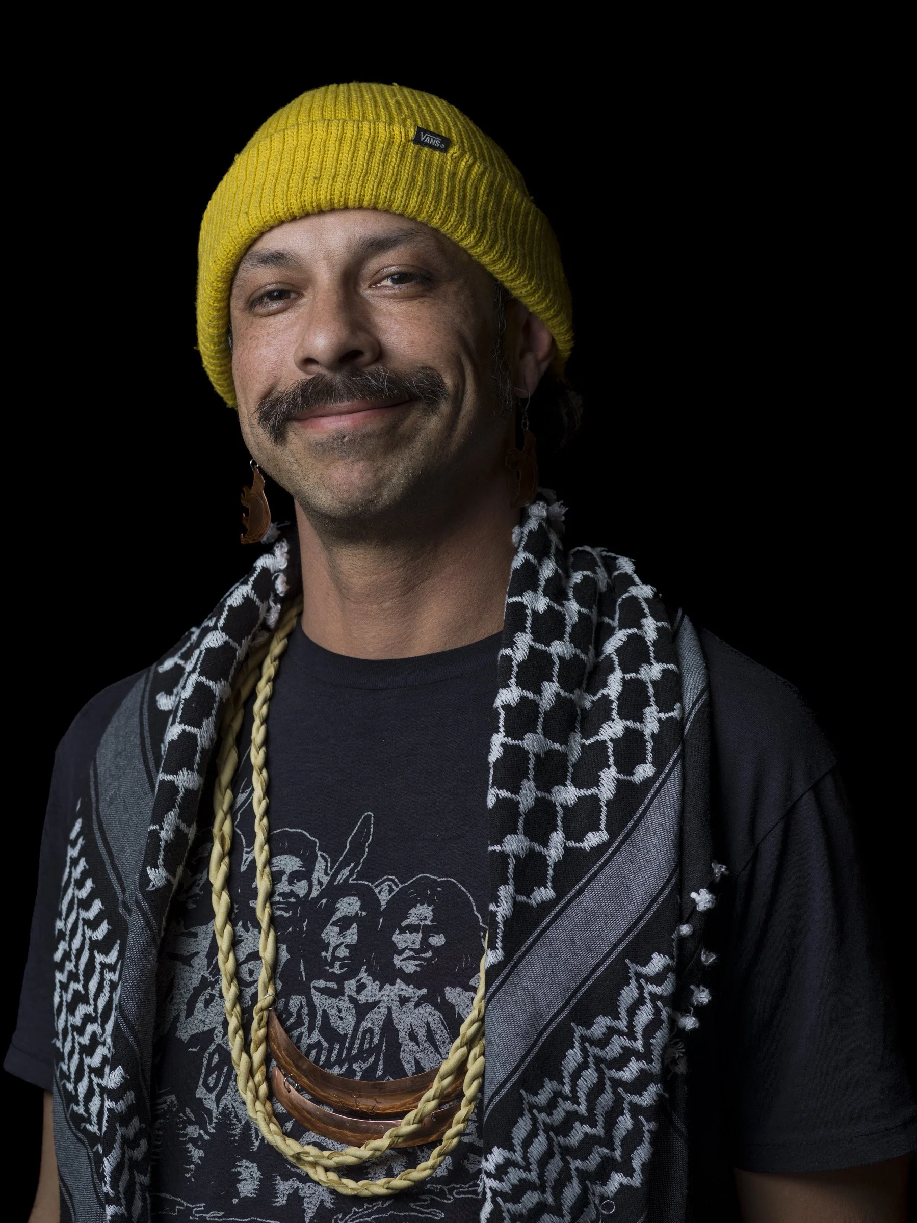 I’m a city Anishnaabe who packed a Rubbermaid tote attached to my skateboard and rode the Greyhound to Seattle, Washington, where I met my wife, Anna, and became a field engineer in telecommunications. After my 10+ years in telecom, I moved back to Lansing’s north side to do what I enjoy, work in art/crafting, and be closer to family and community.